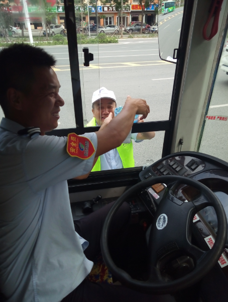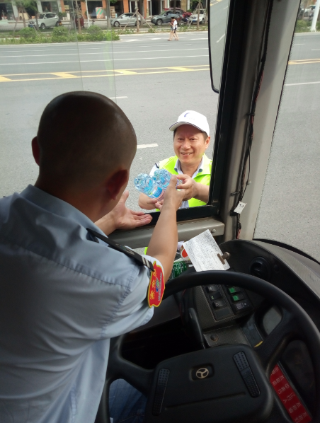 “目前還有小部分線路的公交車是沒有空調(diào)的,就算夏天再熱也得堅持,現(xiàn)在天這么熱,一天下來衣服都不知道要濕多少次。今天有他們給我們送來的礦泉水,讓我們司機(jī)在這夏日里體會到了一絲清涼,真的很感謝他們。有了他們的支持和理解,我們更要做好本職工作?!惫患瘓F(tuán)工作人員說。