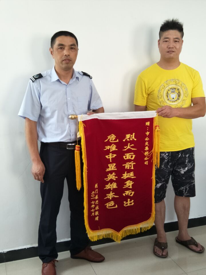 7月27日,荊門市旅行社出租汽車公司負(fù)責(zé)人及鄂H0A073的駕駛員專程來(lái)到荊門公交集團(tuán)公司,為果斷義舉滅火的公交陳旭師傅送上了一面“烈火面前挺身而出,危難中顯英雄本色”錦旗。