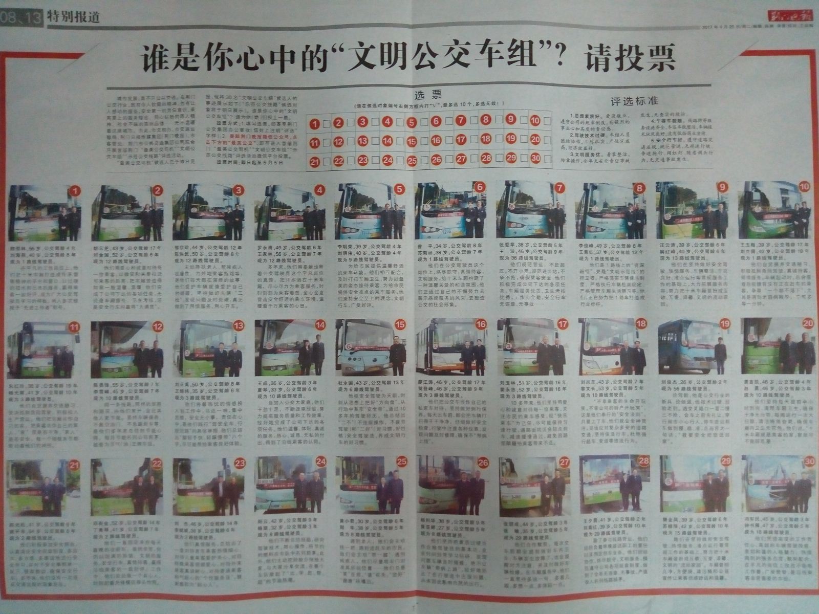 評選投票方式:1.填選選票,郵寄至荊門公交集團(tuán)辦公室收(信封上注明“評選”字樣)。 2.登錄荊門晚報微信公眾號,點(diǎn)擊下方“最美公交”即可進(jìn)入首屆荊門“最美公交司機(jī)”“文明公交車組”“示范公交線路”評選活動微信平臺投票。