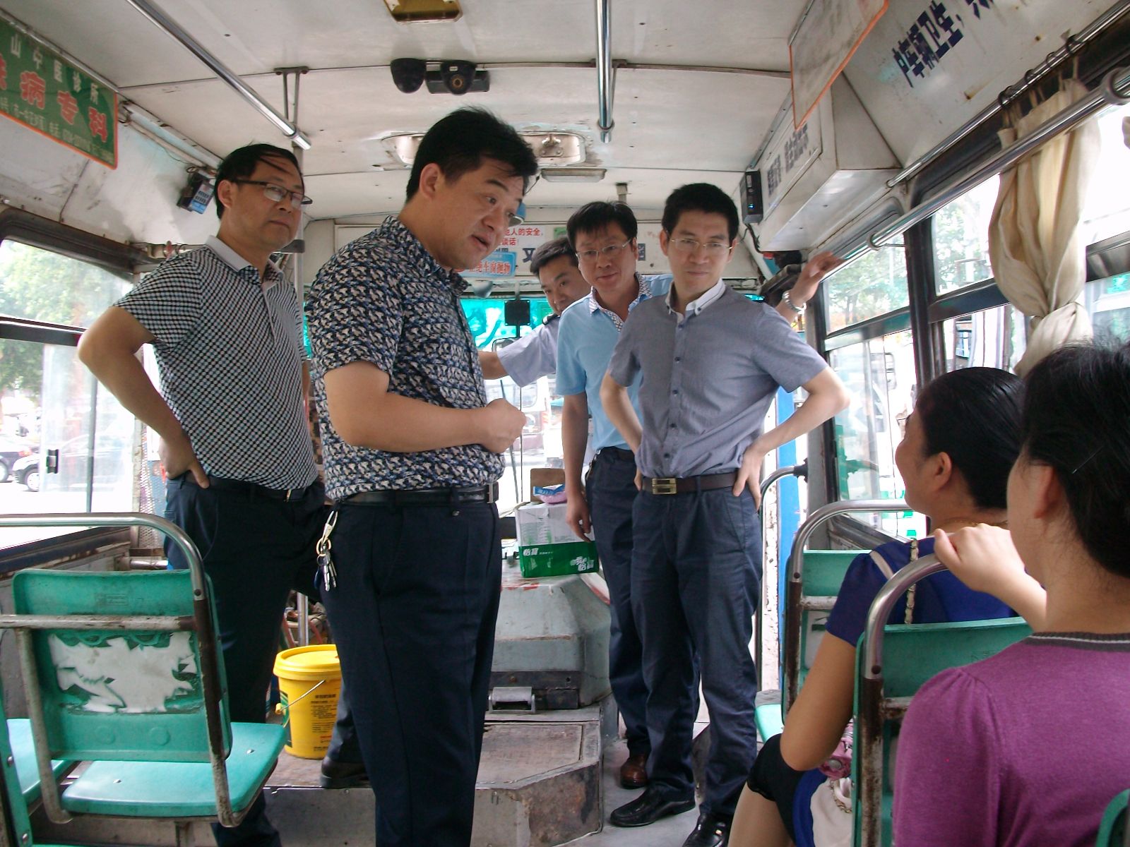 當日中午12時,正值高溫時刻,伍應彪等領導冒著炎炎夏日來到?;圮囌?,看望慰問高溫下堅守工作崗位的公交職工。在16路、21路、22路線正待發(fā)班的公交車前,伍應彪上車與一線駕駛員親切握手,詢問了解駕駛員們的身體和工作情況,并聽取了一公司負責人對改善職工們的工作和休息環(huán)境等工作匯報。在與駕駛員們親切交談中,伍應彪親自為駕駛員們送上了礦泉水、毛巾、人丹、清涼油等防暑降溫用品。同時,他還向部分乘客征求了改善乘車環(huán)境的意見和建議。