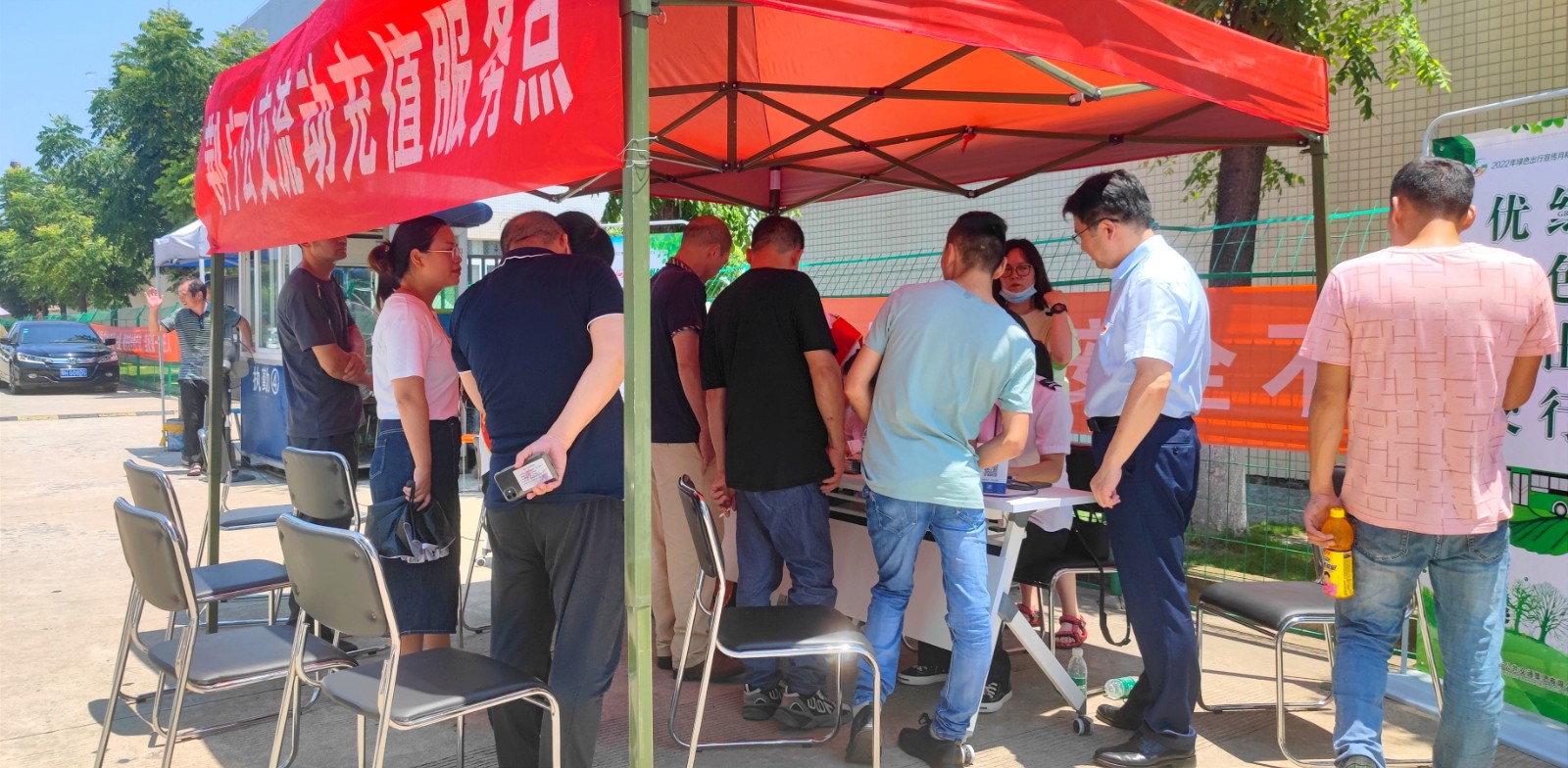 當天中午12時,正是一天最炎熱的時候,也是廠區(qū)職工午休時間。選在這個時間段開展流動服務,是可以最大程度方便殘疾工友,不會耽擱到他們的生產作業(yè),更不會影響他們正常休息,服務點就設在他們下班的必經路。